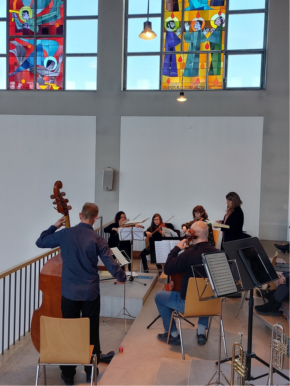Den Höhepunkt der österlichen Tage bildete aber wohl die Messe am Ostersonntag. Der Kirchenchor hat schon öfter Mozart gesungen bei ähnlichen Gelegenheiten, auch die wegen himmlisch übermütigem Jubel in „Sanctus“ und „Benedictus“ so genannte „Spatzenmesse“ KV 220, aber noch kaum je so eindringlich, des Anlasses würdig wie unter dem Dirigent von Mark Casey: Das Flehen um Gottes Erbarmen, geradezu schmeichlerisches Gotteslob und Verehrung, die Selbstvergewisserung des „Credo“ , die Hammerschläge bei der Kreuzigung, den vielstimmigen Schrei nach Frieden, damit der Einsatz des „Agnus Dei“, das gewaltlose Opfer Christi nicht umsonst bleiben möge: Keine Spur von „salzburgischer Oberflächlichkeit“, die man der Messe in CD-Dur nachgesagt hat. Der Chorleiter und seine Frau Tania übernahmen selbst zwei der Solostimmen; berührend das warmherzige „Benedictus“ der Sopranistin Eva-Maria Heinzle. Händel kam zweimal zu Ehren – kein Ostern ohne das große Halleluja aus dem „Messias“ . Passend dazu Instrumentalmusik - eine der Kirchensonaten Mozarts. Die Feier von Tod und Auferstehung Jesus 2026 in Altach war ein Erlebnis.