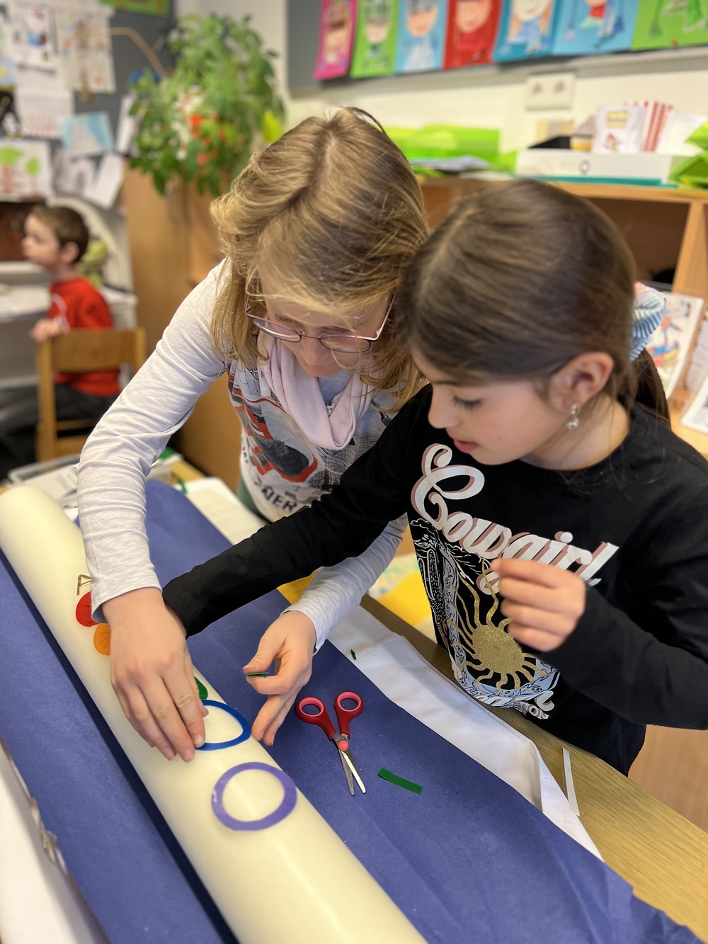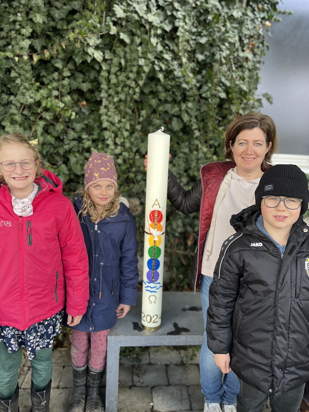 Die Gestaltung der neuen Osterkerze für die Kirche hat heuer die Klasse 2b der Volksschule Altach übernommen. Dabei ging es vor allem um ein Miteinander und um Kreativität. Somit konnte sich die Klasse gerade in der Karwoche mit dem Osterfest auseinandersetzen.