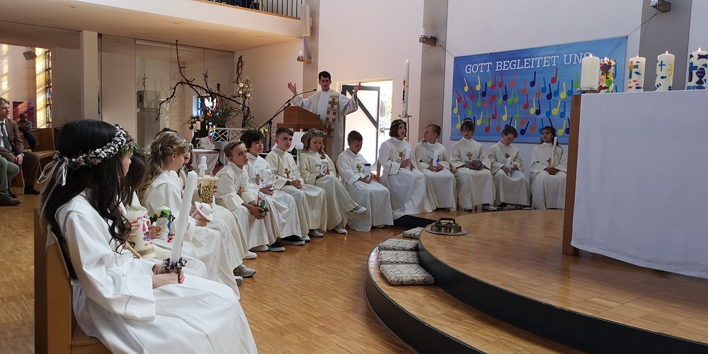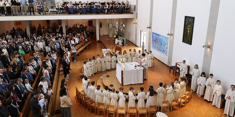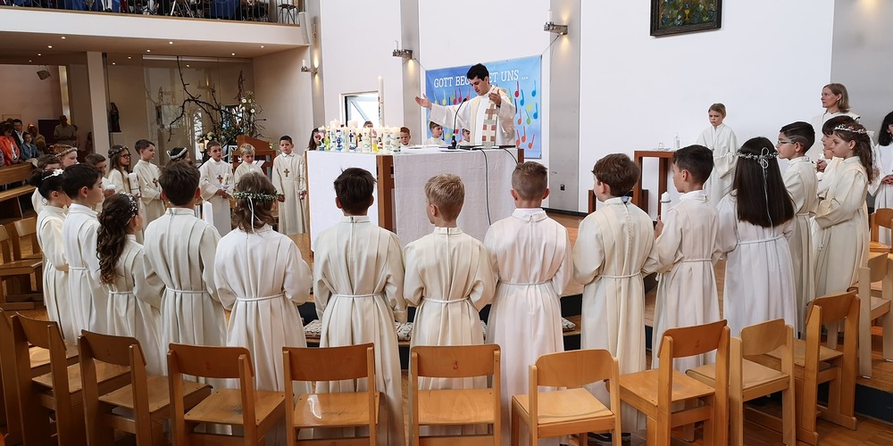 Am vergangenen Wochenende empfingen insgesamt 63 Kinder das erste Mal die hl. Kommunion. Aufgeteilt auf Samstag und Sonntag kamen am Samstagnachmittag 31 Kinder und am Sonntagvormittag 32 Kinder zur Erstkommunion.