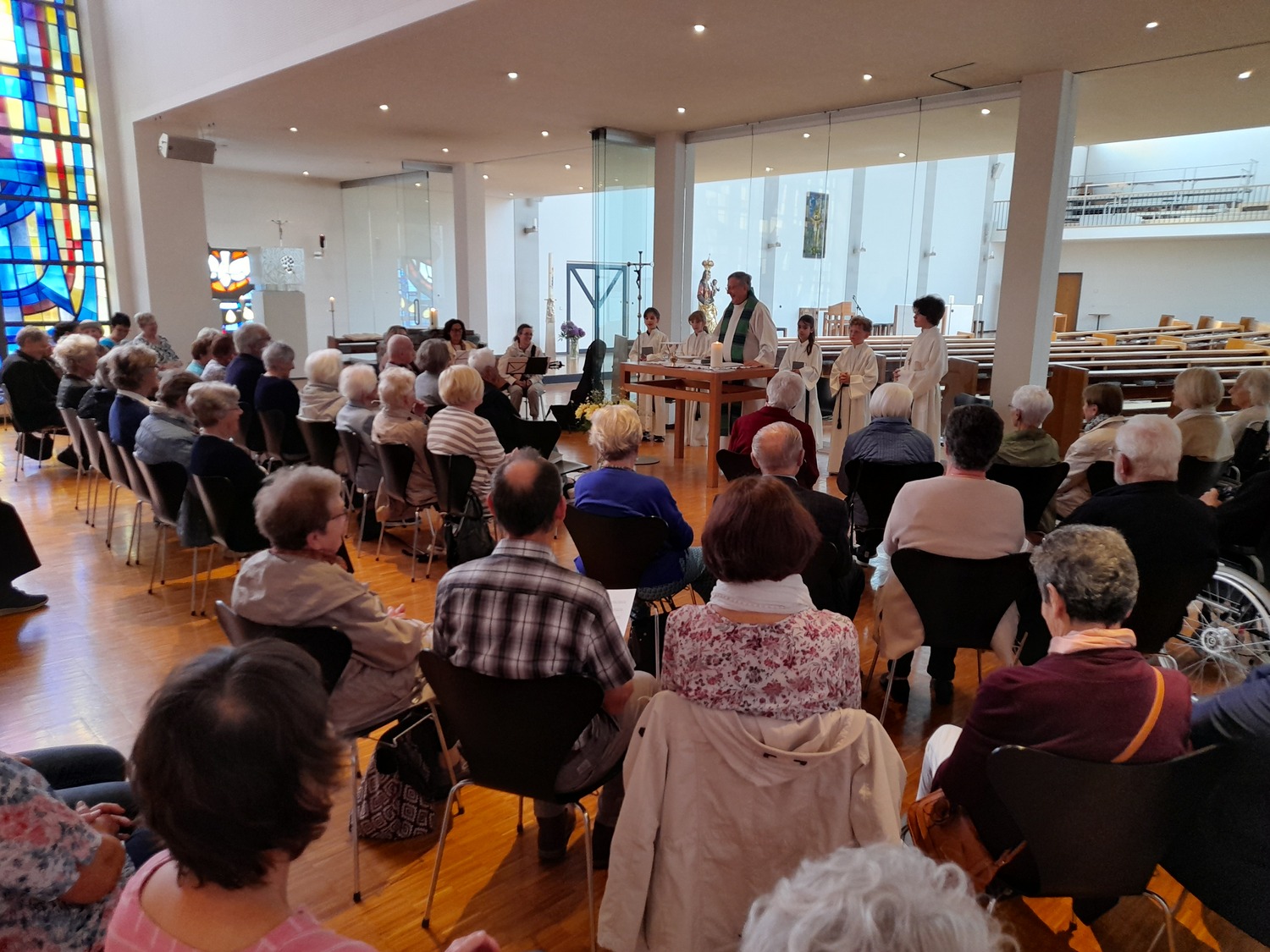 Am Samstag, dem 25.5.24 um 15.30 Uhr feierten wir in unserer Pfarrkirche Altach das Fest der Krankensalbung. Die vollbesetzte Werktagskapelle bot dafür einen geschützten Rahmen. Pfarrer Wilfried Blum und Heimseelsorger Matthias Nägele gestalteten in Zusammenarbeit mit dem Arbeitskreis Pfarrcaritas einen einfühlsamen Gottesdienst. Es wurde allen Anwesenden, die zur Stärkung für ihre körperlichen und/oder seelischen Leiden kamen, die Krankensalbung gespendet.