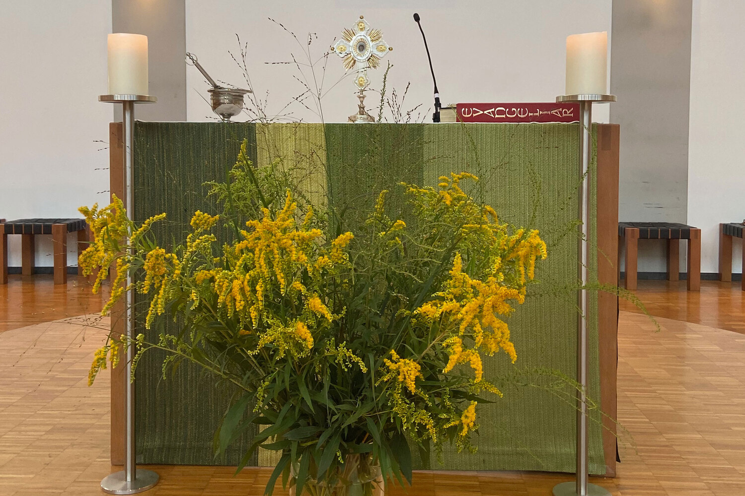 Die Gottesdienstbesucher schmücken den Altar mit ihren Blumen- und Kräutersträußen und nehmen die gesegneten Pflanzen mit nach Hause. Ein schönes Zeichen der Dankbarkeit für die Schöpfung und für all das, was uns an der Natur erfreut.