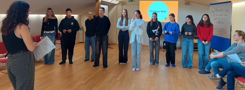Zum zweiten Workshop passt der Titel „Privilege Walk gegen Diskriminierung“. Die Referentinnen von der Caritas Flüchtlingshilfe gaben einen wichtigen und interessanten Input zu Rassismus, Diskriminierung und Menschenrechten. In Gruppenarbeiten und Rollenspielen wie dem „Privilege Walk“ konnten vielfältige Arten von Diskriminierung aufgezeigt werden.