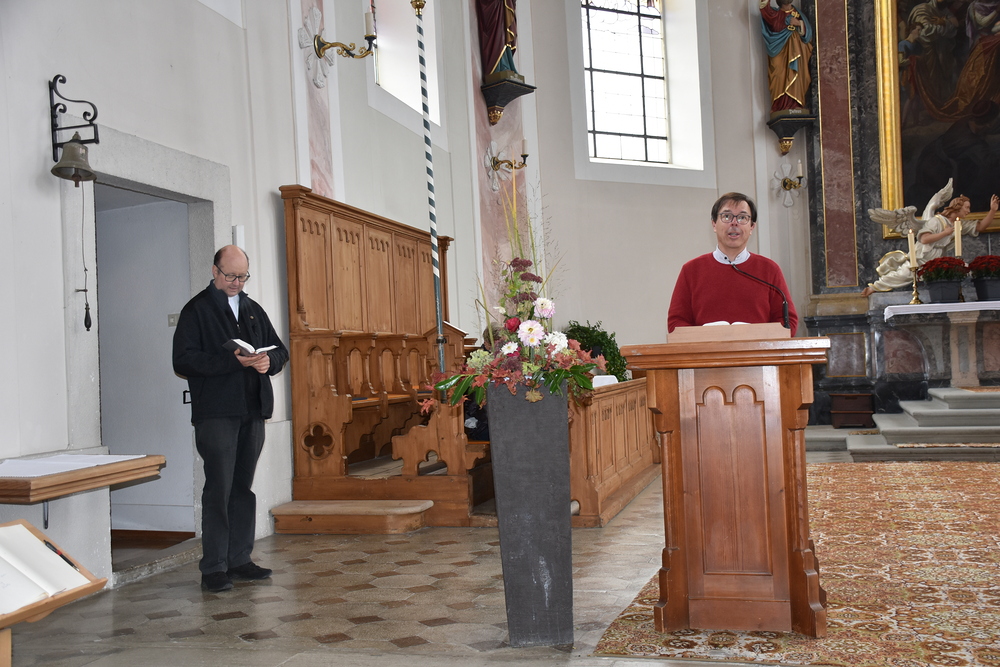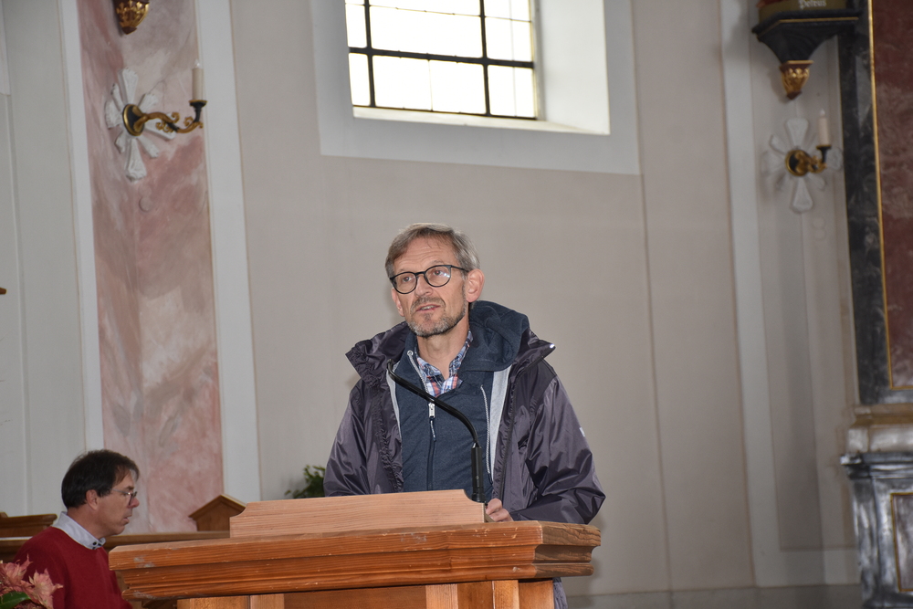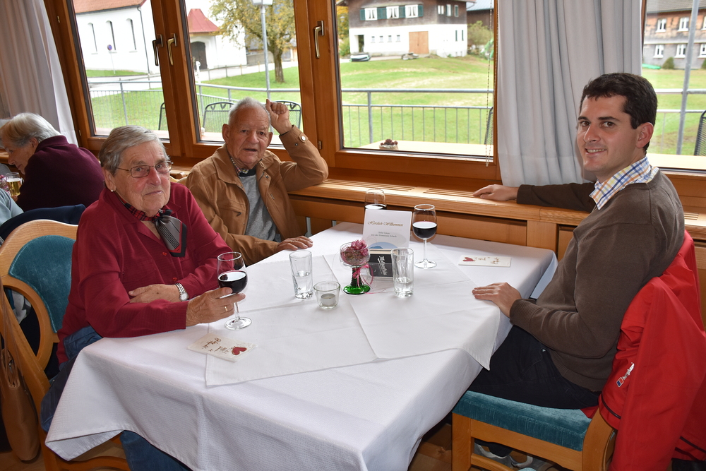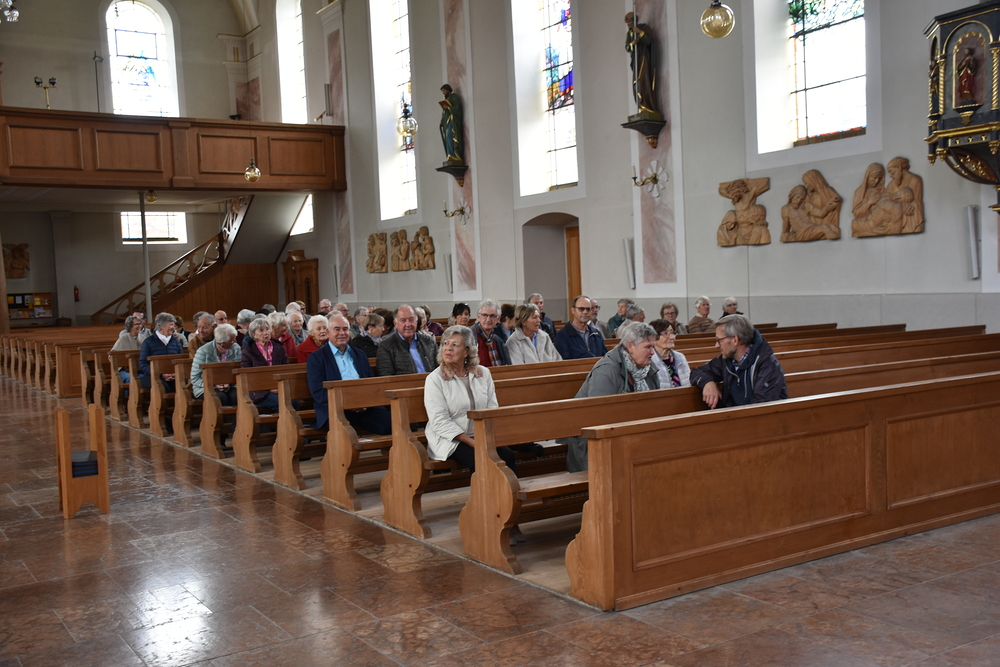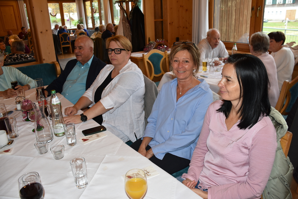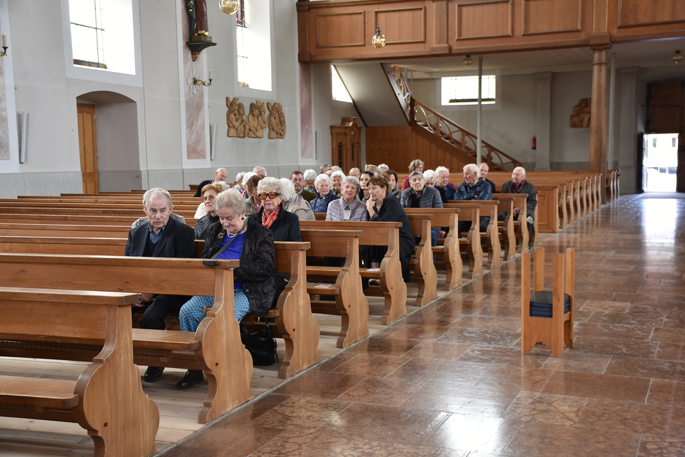 Gegen 13 Uhr starteten wir vom Kirchplatz über Schwarzach und Alberschwende nach Hittisau. In der Pfarrkirche „Hl. Drei Könige“ begrüßte Pfarrer Hubert Ratz unsere Gruppe von 105 Personen. Mit Orgelmusik wurden wir durch eine Andacht begleitet, wir haben um Frieden und Zusammenhalt gebetet und fuhren dann weiter zum Hotel Hirschen nach Sibratsgfäll.