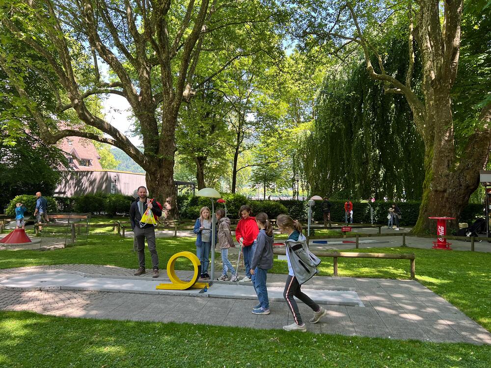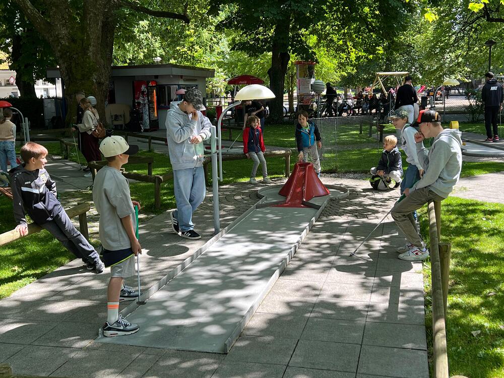 Mit dem Zug ging es los nach Bregenz, um Minigolf zu spielen. Danach durfte natürlich eine Belohnung nicht fehlen: ein Besuch in der Eisdiele. Bei sonnigem Wetter genossen die Minis ihr wohlverdientes Eis – von Schokolade bis Huba Buba war für jeden Geschmack etwas dabei.