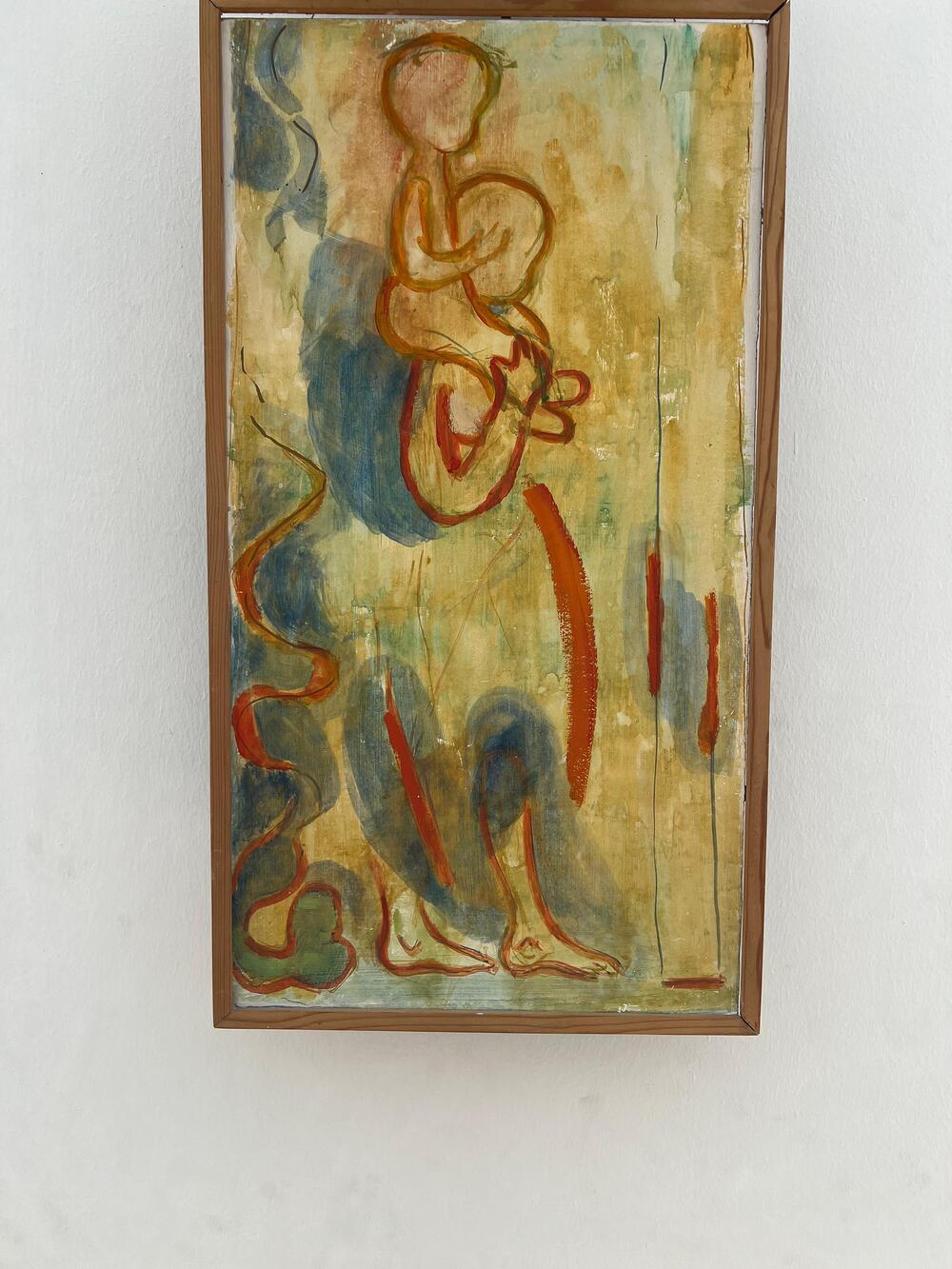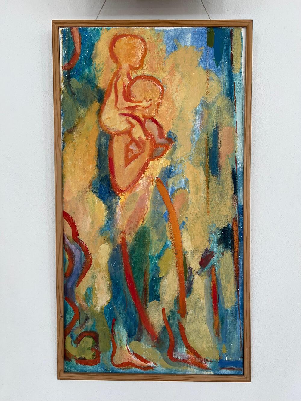 Die ersten Skizzen im sich nach oben verjüngenden Hochformat zeigten Mutter und Kind vereint, Inbegriff der Liebe, der Hingabe („Wer sein Leben verliert, der wird es gewinnen“) und des grenzenlosen Vertrauens („Wenn ihr nicht werdet wie Kinder, könnt ihr nicht zum Paradies gelangen“). Einzig dunkle Stellen im Kleid sind wie Fragezeichen im gewohnten Bild der Frau.