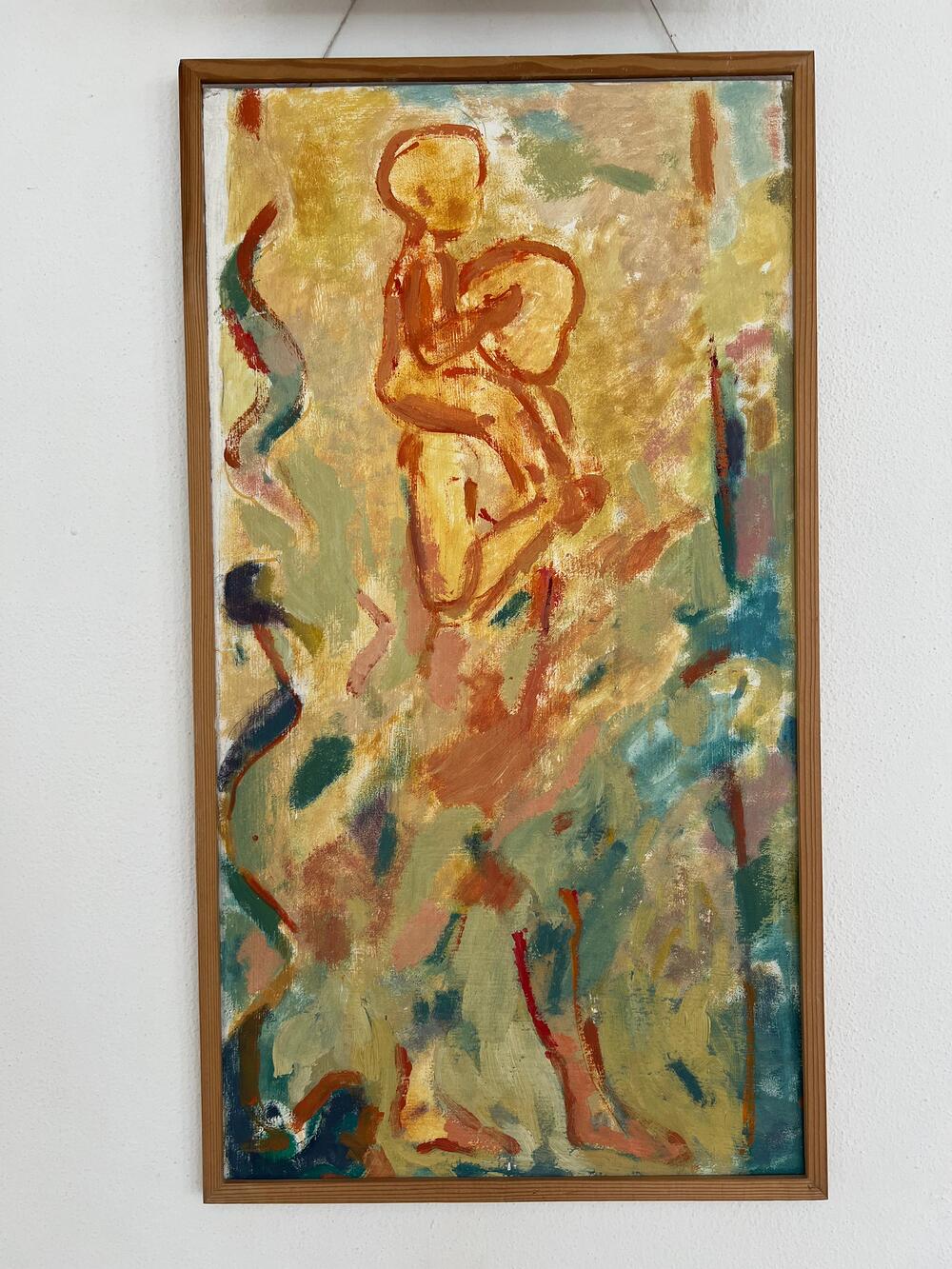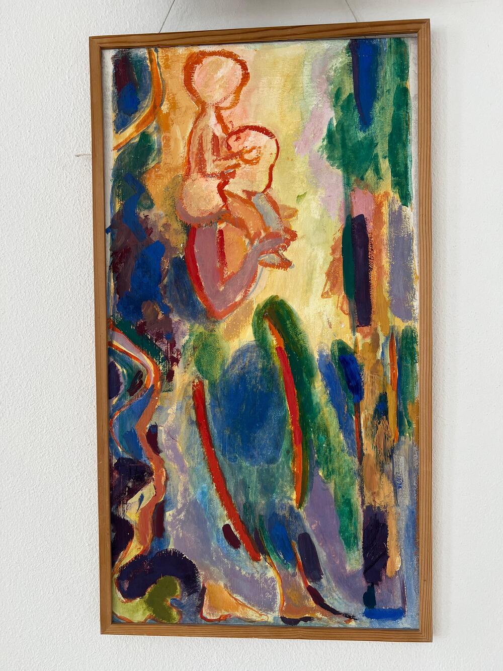 Außerdem begann die Künstlerin Mutter und Kind gehend darzustellen - ähnlich wie auf ägyptischen Reliefs, unterwegs, nicht in Vorder-, sondern in Seitenansicht. Ist nicht jedes Bild Ergebnis von Bewegung und zugleich Anleitung, sie nachzuvollziehen? Und sind wir Menschen mit Gliedern und Sinnen nicht Wesen, zum Gehen bestimmt? (Kaum eine Aufforderung steht so oft in der Bibel wie die, aufzubrechen, weiterzugehen. Jesus war immer auf dem Weg.) Dieses Gehen wird dunkel und leuchtend unterstrichen durch die Betonung von Ober- und Unterschenkel.