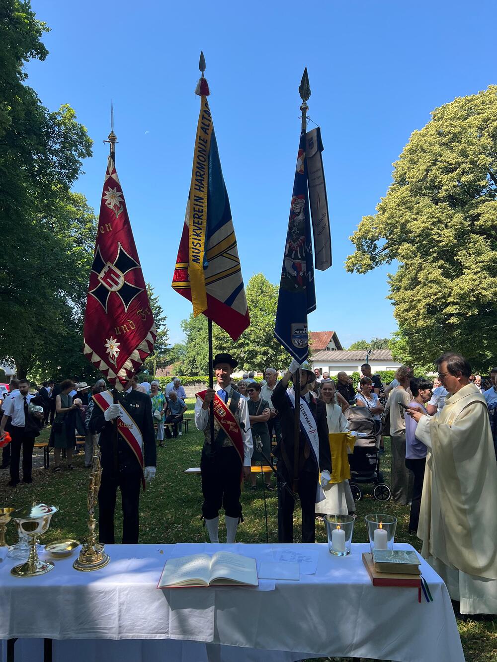 In seiner Predigt erinnerte Pfarrer Rainer Büchel daran, dass an Fronleichnam unser Glaube in Brot und Wein sowie in der Gemeinschaft greifbar wird. Passend dazu wurden auch die vielen Vereine in Altach zum Thema gemacht, die mit ihrer Arbeit innerhalb der Gemeinde eine wichtige Nahrung für die Seele darstellen.