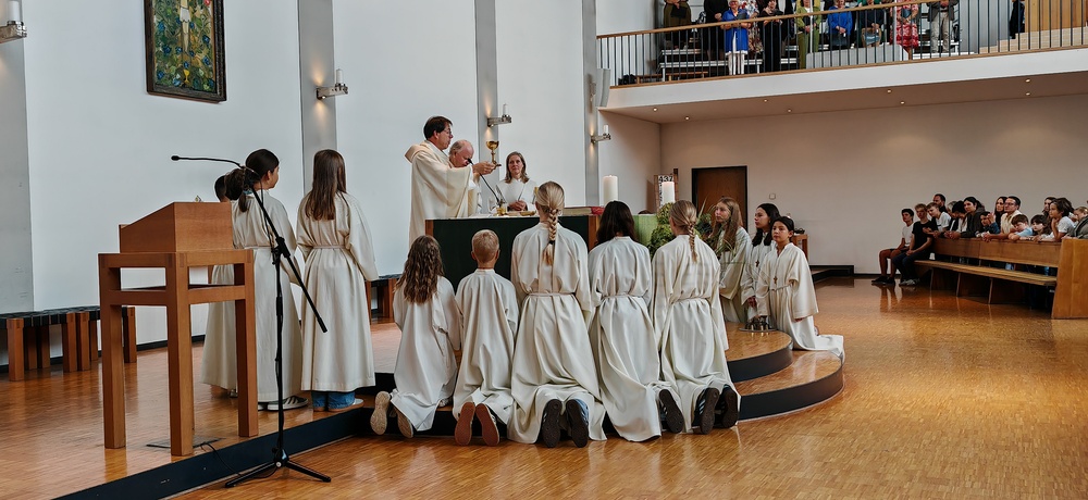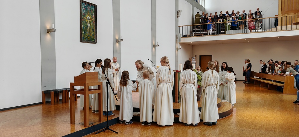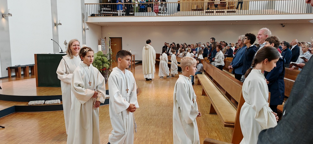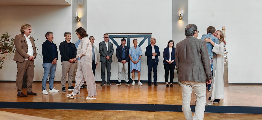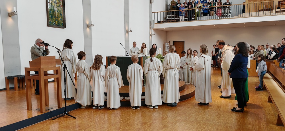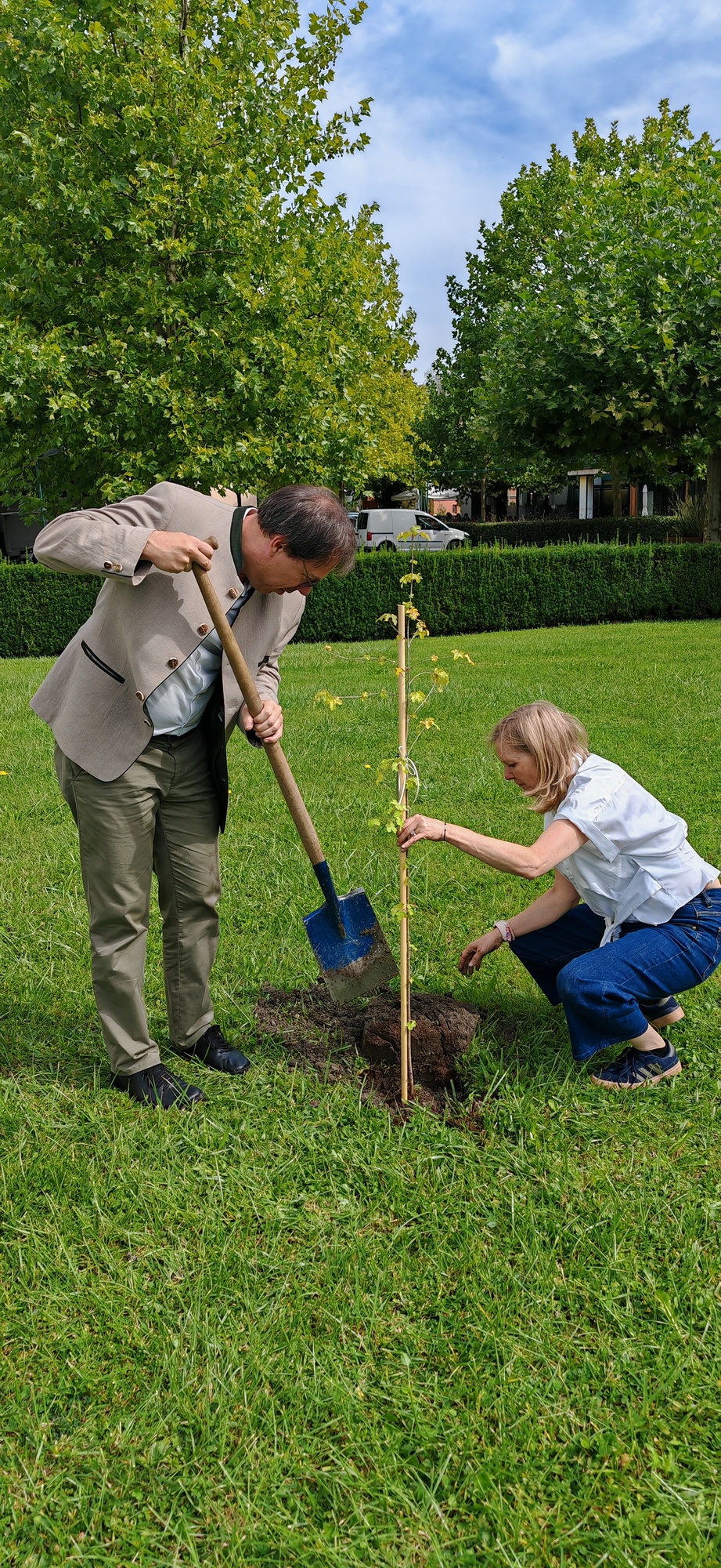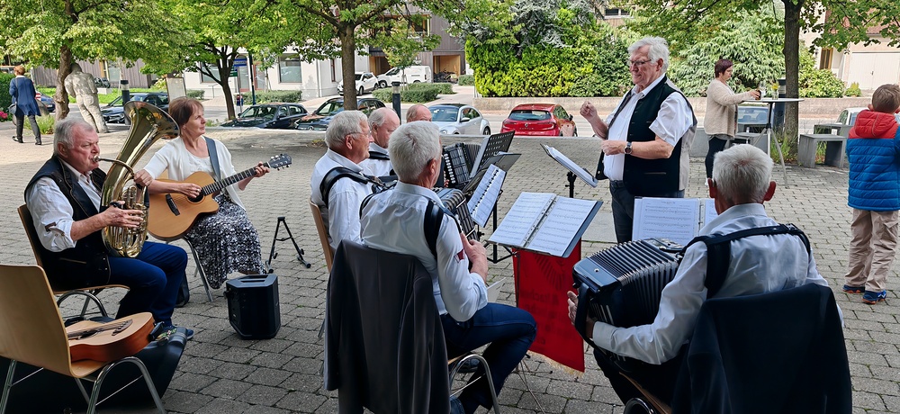 Im Anschluss lud die Pfarre zum gemütlichen Ausklang bei einer Agape Deluxe auf den Kirchplatz ein, die von der Diatonischen Gruppe des Akkordeonclubs Altach begleitet wurde. Die frisch gebackene Gemeindeleiterin durfte dabei zahlreiche Glückwünsche entgegennehmen. Als lebendiges Symbol für Hoffnung, Neubeginn und Zusammenhalt in unserer Pfarre pflanzte Heidi mit Unterstützung von Pfarrer Rainer einen kleinen Feldahorn auf dem Kirchengelände. In einer Zeit voller Herausforderungen soll damit ein Zeichen für unsere Umwelt, für kommende Generationen und für das Vertrauen in eine gute Zukunft gesetzt werden.