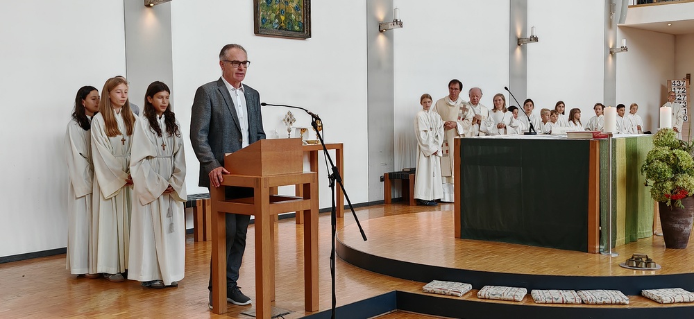 Bürgermeister Markus Giesinger betonte in seinem Grußwort am Ende des Gottesdienstes die gute Kooperation zwischen Pfarre und Gemeinde. Er wünschte der neuen Gemeindeleiterin alles Gute für ihre neue Aufgabe in der Pfarre und auch im neuen Pfarrverband am Kumma, der sowohl die Eigenständigkeit der Pfarre gewährleiste als auch die Zusammenarbeit in der Region ermögliche.