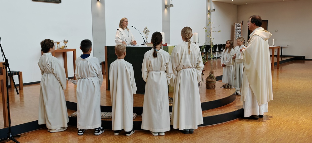 Danach folgte die offizielle Beauftragung von Heidi Liegel als Gemeindeleiterin durch Pfarrer Rainer, in der sie sich bereit erklärte, die Werke der Barmherzigkeit zum Wohle der Menschen in Altach und darüber hinaus zu leben, die christliche Hoffnung in die verschiedenen Bereiche des Lebens zu tragen und mit den Menschen in den pfarrlichen Gremien und allen Gläubigen zusammenzuarbeiten. Anschließend versicherten auch alle Pfarrgemeinderäte und Pfarrkirchenräte der neuen Gemeindeleiterin ihren Willen zur Mitarbeit und Zusammenarbeit.