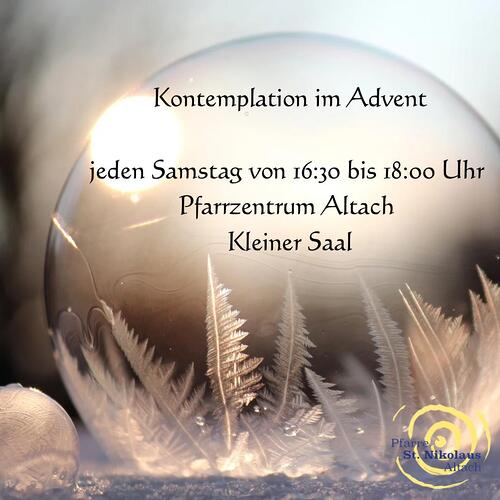 Kontemplation im Advent Eine kleine Gruppe trifft sich jeden Adventsamstag im kleinen Saal im Pfarrzentrum zur gemeinsamen Kontemplation. Mehr lesen
